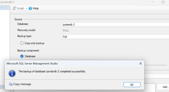 - Backup mit SSMS: Erstellen Sie ein Backup Ihrer MS SQL Server-Datenbank mit SQL Server Management Studio (SSMS) oder Ihrem bevorzugten Backup-Tool.