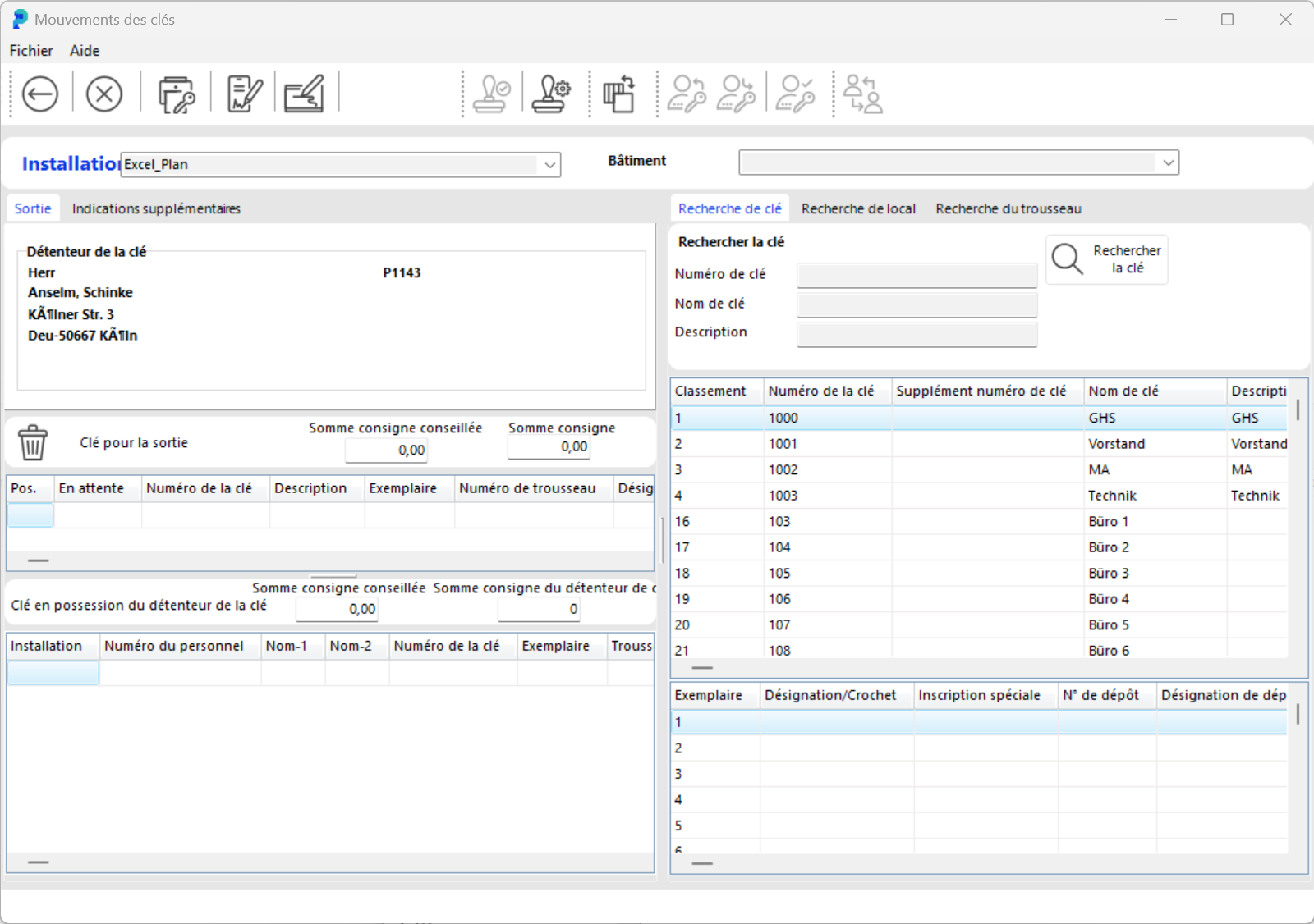 portier®VISION 5 gère les délivrances de clés jusqu'à l'exemplaire exact ; toutes vos clés sont donc numérotées correctement. Vérifiez soigneusement quel exemplaire vous délivrez et sélectionnez-le précisément dans la liste.