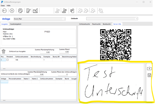 La signature enregistrée est stockée dans la base de données et disponible dans l'affichage des clés sous l'onglet Clé détenue par.