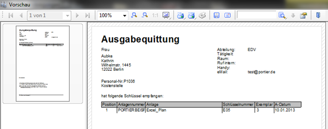 Hier lassen Sie sich durch Klick auf die Schaltfläche Starten eine Vorschau der Ausgabequittung anzeigen.